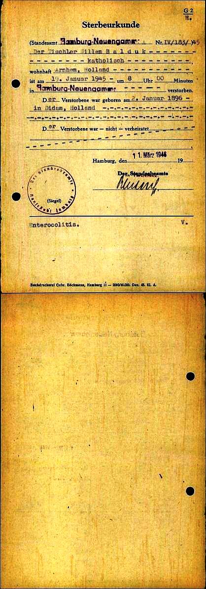 GldA, ovl. reg. Arnhem 1946, akte 942 (Uittrekssel uit het ovl. reg. Hamburg Neuengamme in Duitsland.)