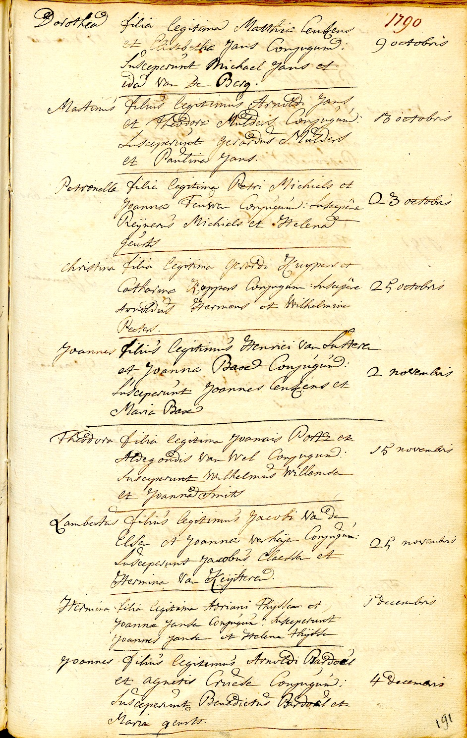 BHIC, DTB Cuijk doopb. 1762-1796, inv. nr. 16 blad 191