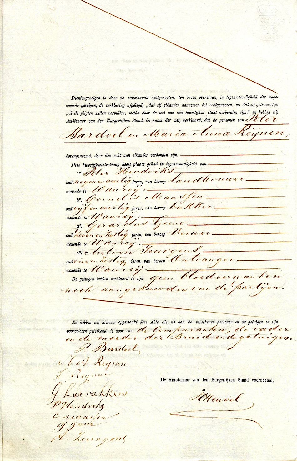 BHIC, huw. reg. Wanroij 1864, akte 2