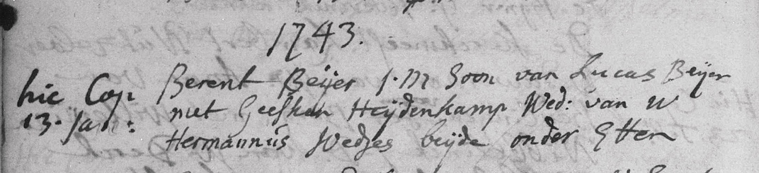 Terborg huw. 13-01-1743 Berent Beijer en Geesken Heijdenkamp