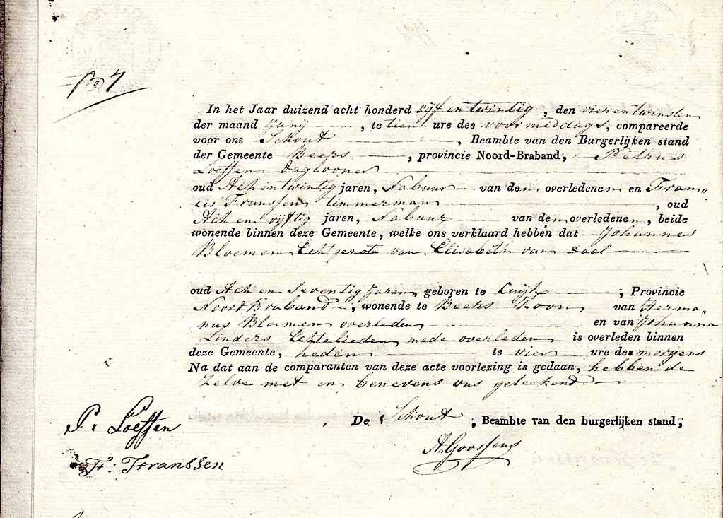 Joannes Bloemen overlijden