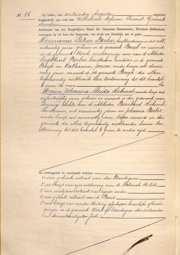 GeldA, huw. reg. Gendringen 1911, akte 46