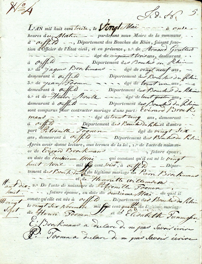 BHIC, huw. reg. Oeffelt 1813, akte 4
