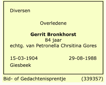 Gerrit Bronkhorst overlijden