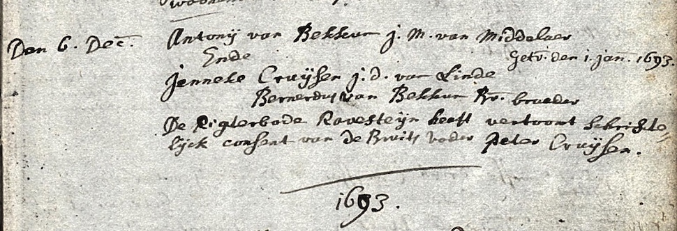 Cuijk huw. 01-01-1693 Antonij van Bekkum en Jenneke Cruijsen