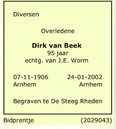 Theodorus van Beek overlijden