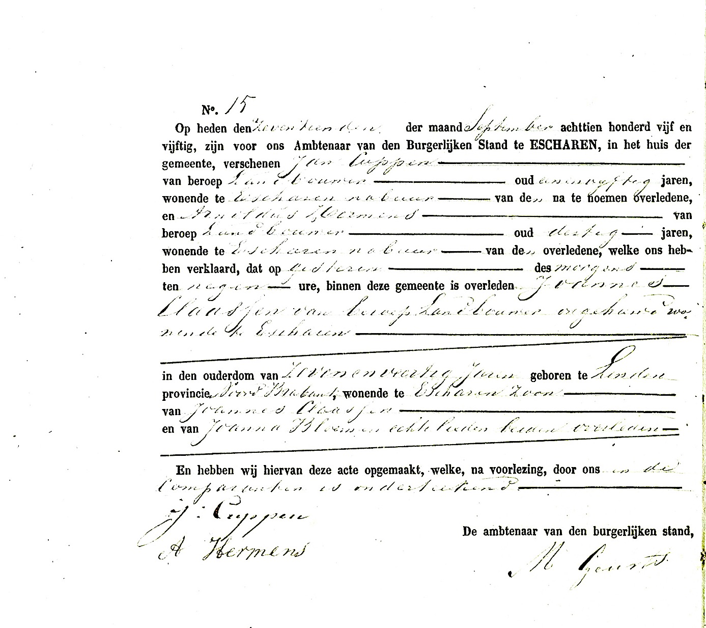 BHIC, overl. reg. Escharen 1855, akte 15