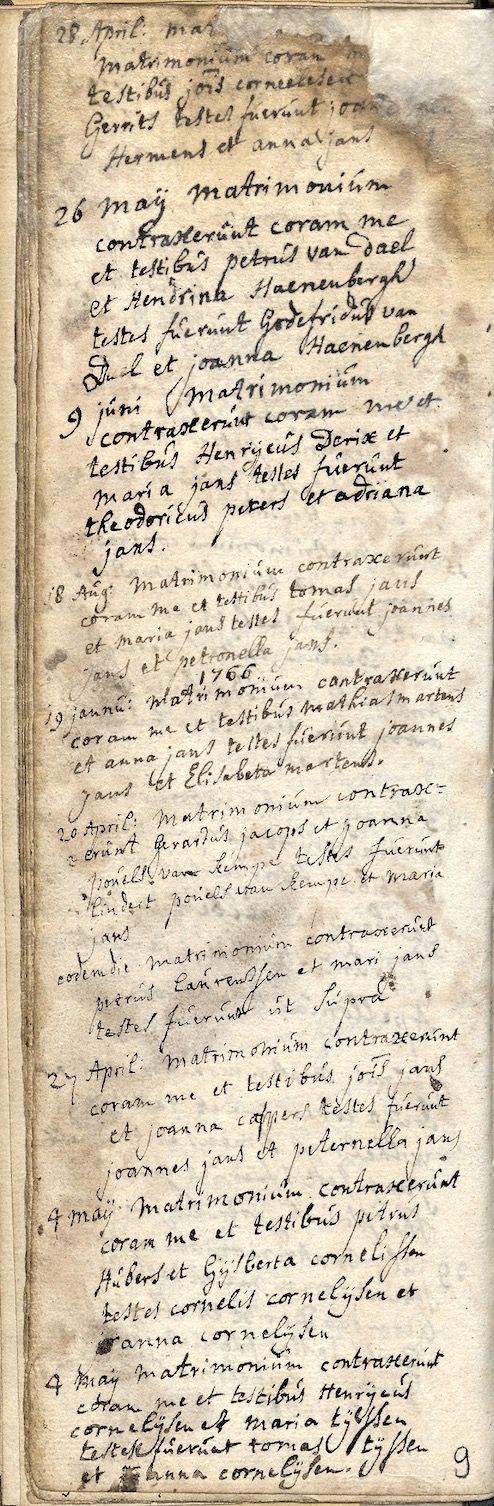 BHIC, DTB Beers trouwboek 1751-1822 inv. nr. 18 Folio/pag. 9