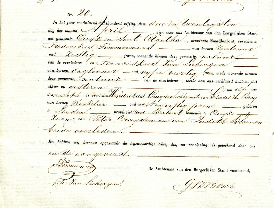 BHIC, ovl. reg. Cuijk en Sint Agatha 1850, akte 20