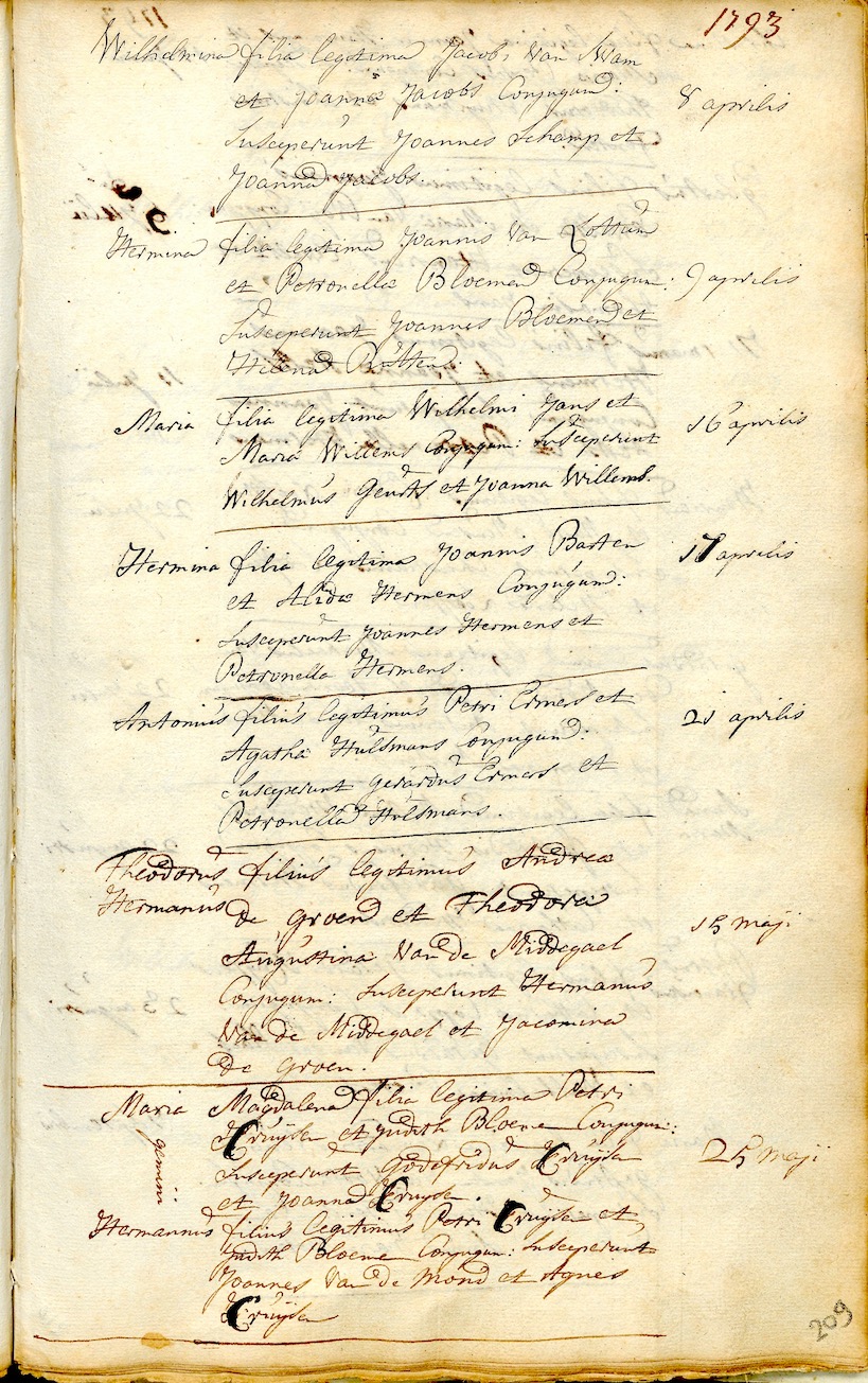 BHIC, DTB Cuijk doopb. 1762-1796 inv. nr. 16 folio/pag. 209