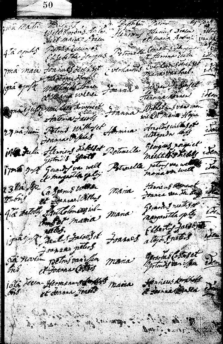 Fam. search, Bergen (L) R.K. Par. H. Petrus dopen 1682-1798, inv. 62 pag. 96