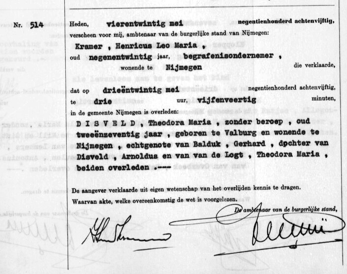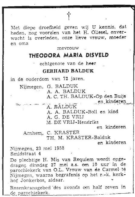 Nijmegen overl. 23-05-1958 Theodora Maria Disveld