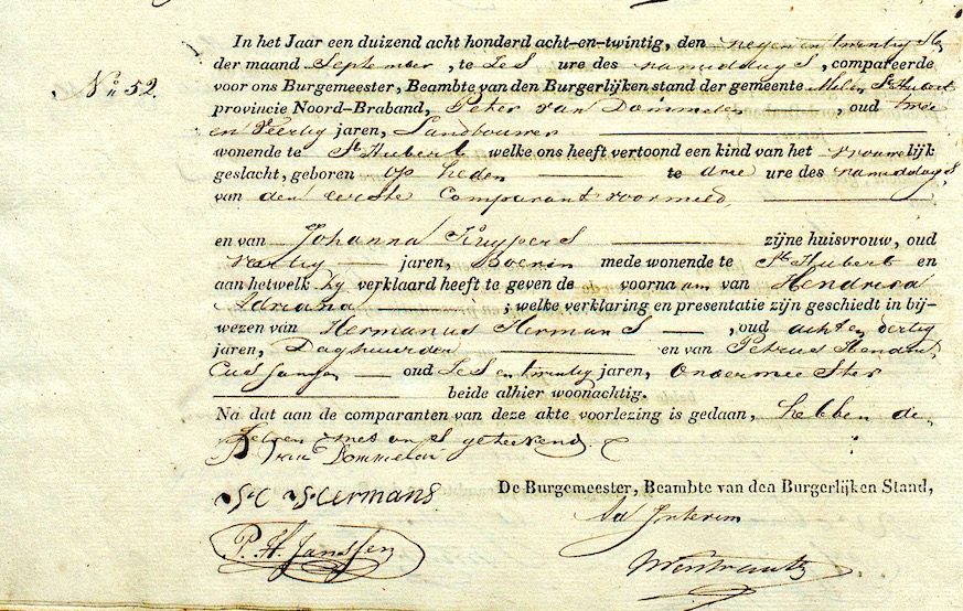 BHIC, geb. reg. Mill en Sint Hubert 1828, akte 52