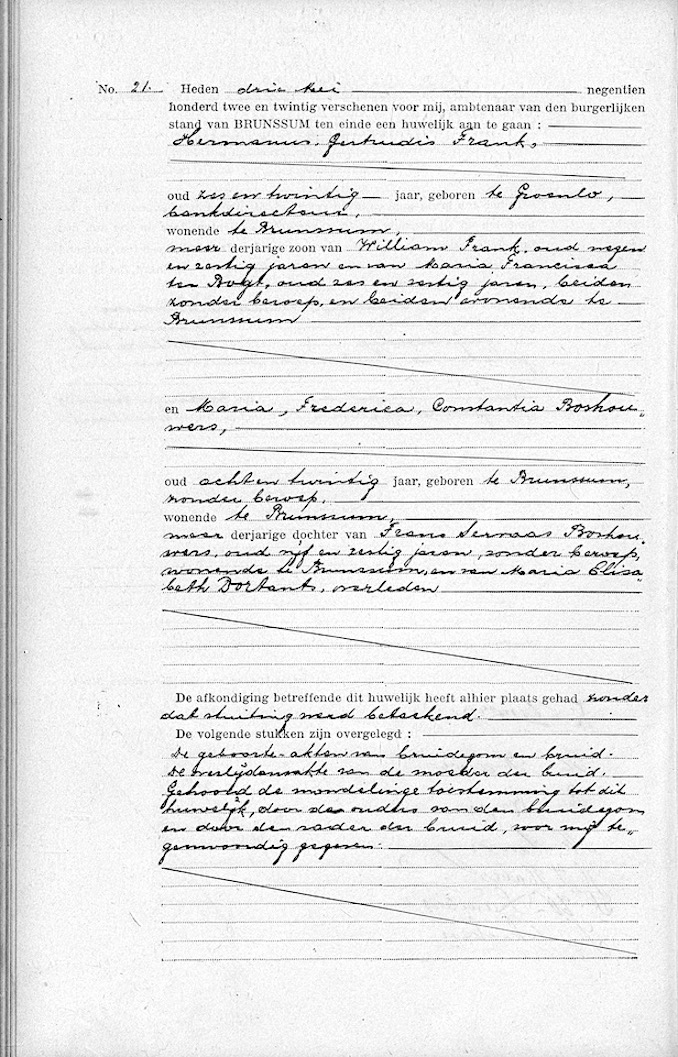 RHCL, huw. reg. Brunssum 1922, akte 21
