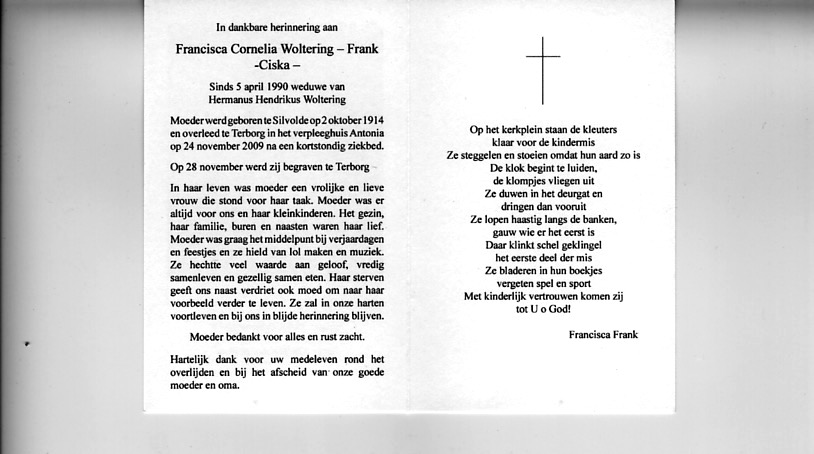 Francisca Cornelia Frank begraven