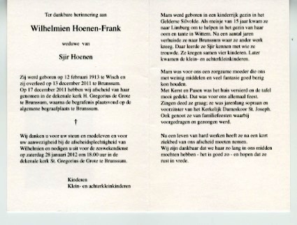 Wilhelmina Johanna Frank overlijden