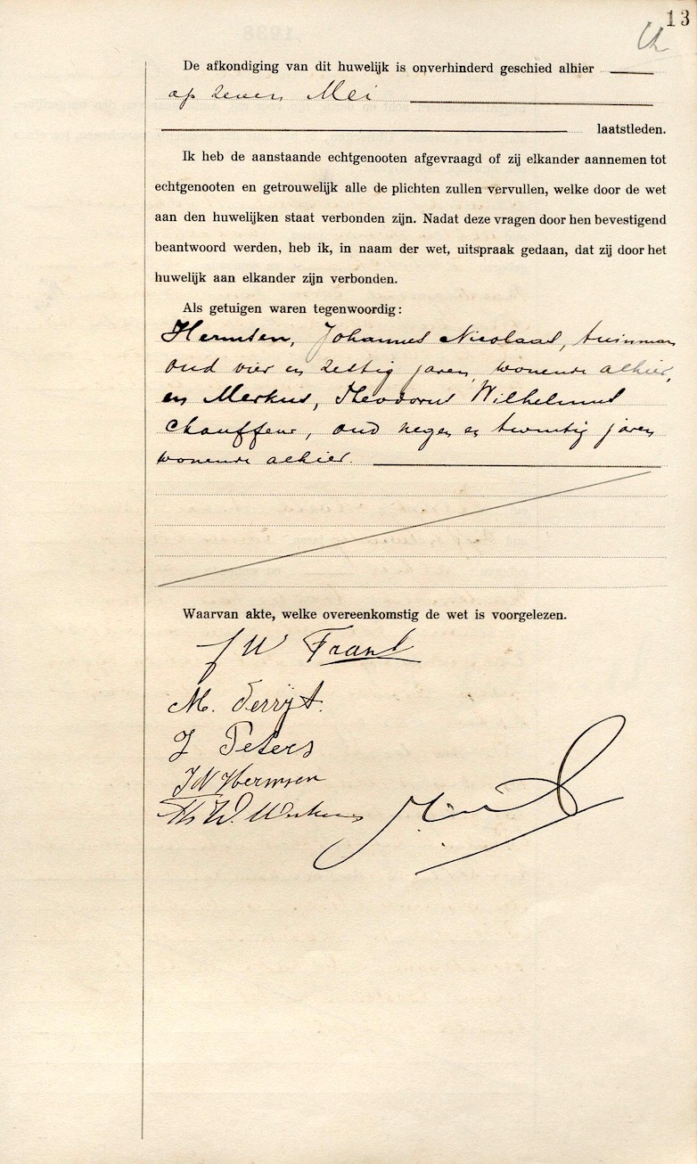 Ubbergen huw. 18-05-1938 J.W. Frank en M.W. Verrijt