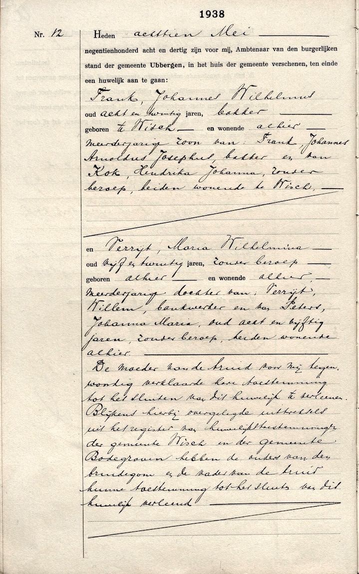 Ubbergen huw. 18-05-1938 J.W. Frank en M.W. Verrijt