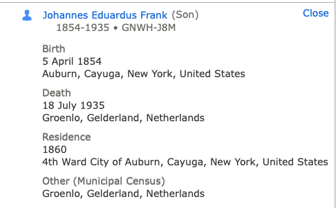 Johannes Eduardus Frank geboorte