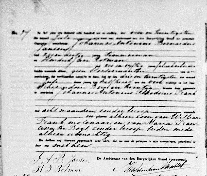 Johannes Antonius Theodorus Frank overlijden