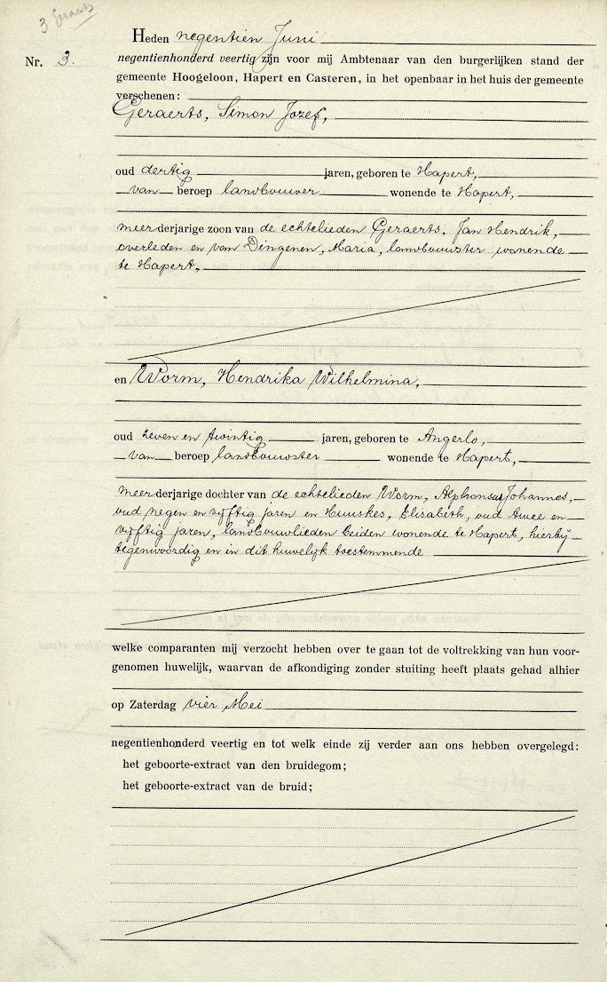 BHIC, huw. reg. Hoogeloon, Hapert en Casteren 1940, akte 3