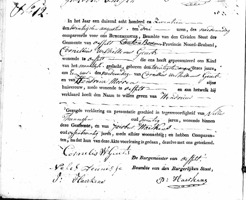 BHIC, geb. reg. Oeffelt 1817, akte 12