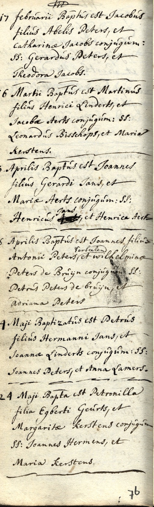 BHIC, DTB Haps RK doopb. 1723-1792 pag. 124v inv. nr. 3