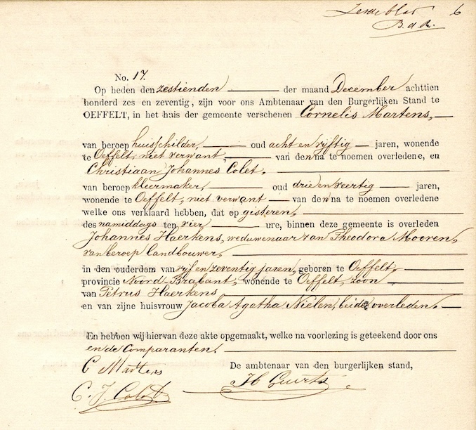 Johannes Haerkens overlijden