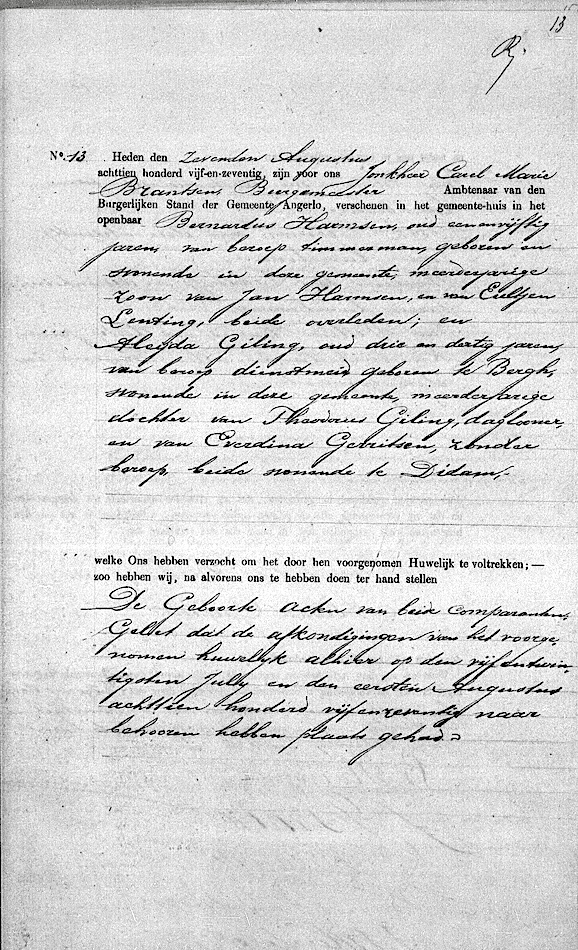 GldA, huw. reg. Angerlo 1875, akte 13