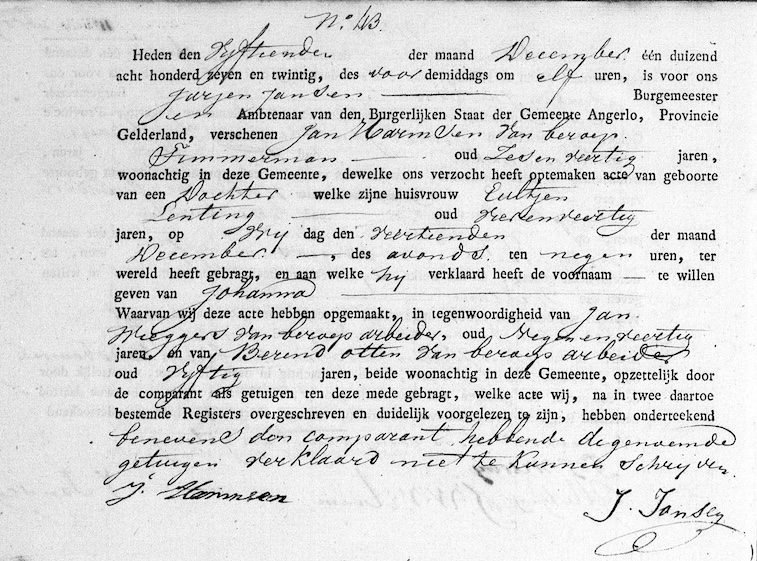 GeldA, geb. reg. Angerlo 1827, akte 43