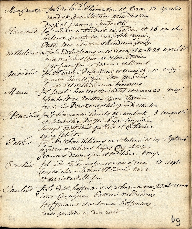 BHIC, DTB RK Vierlingsbeek doopboek 1663-1811 pag. 69 inv. nr. 28