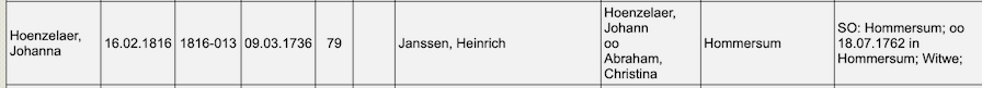Joanna Hoenselaer begraven