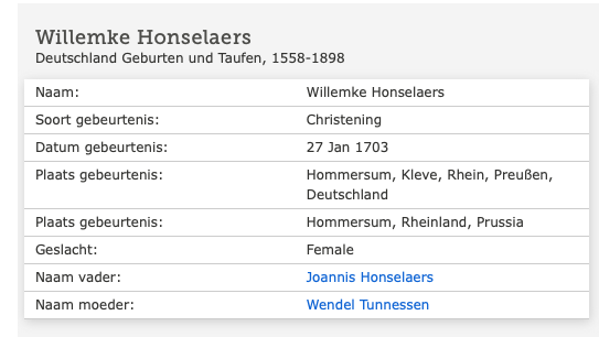 Wilhelmina - Willemke Honselaers doop