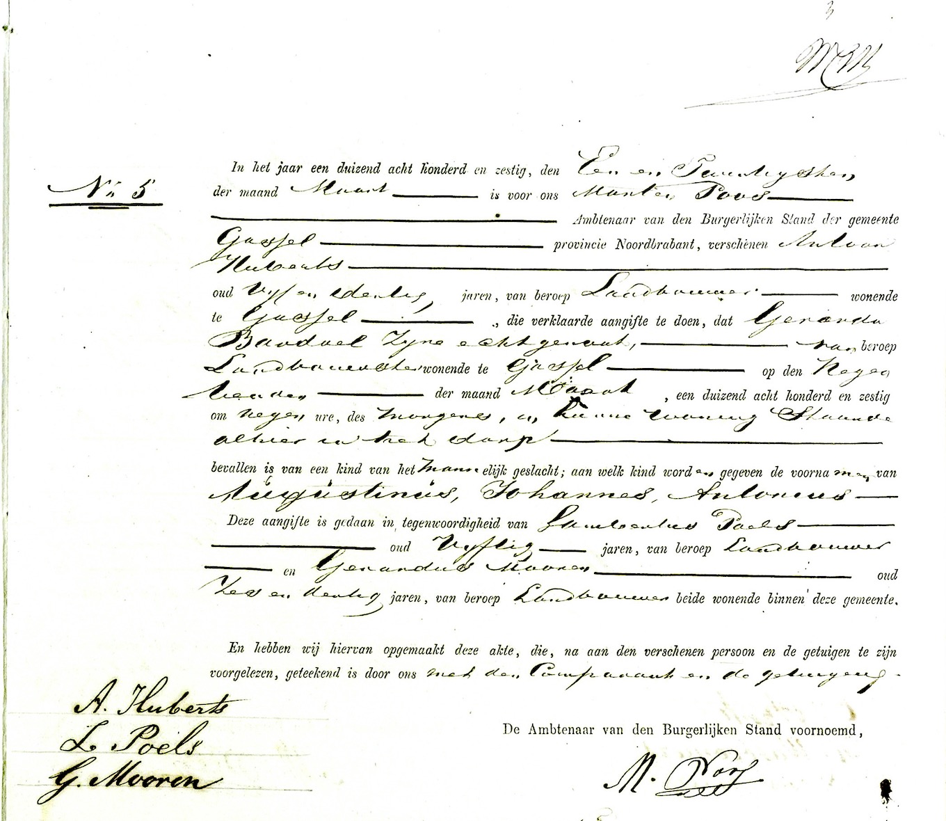 Augustinus Johannes Antonius Huberts geboorte