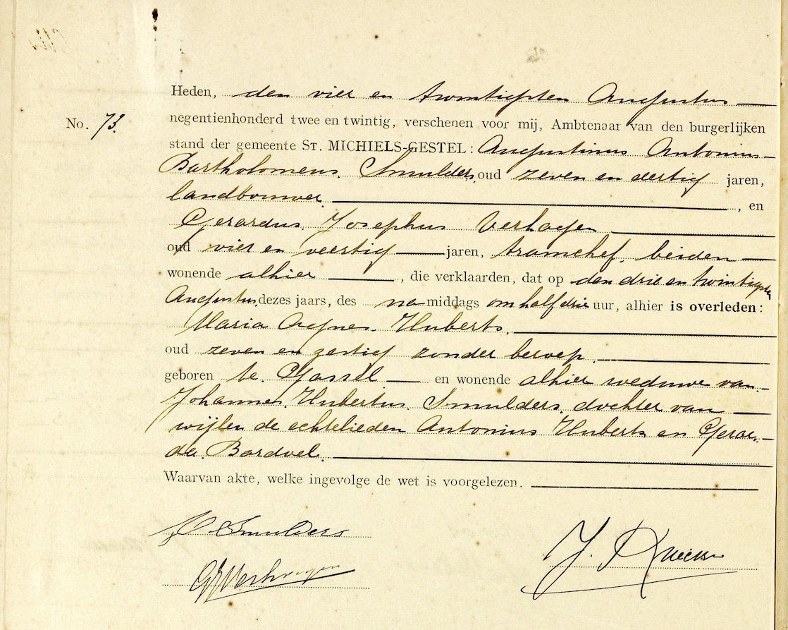 BHIC, ovl. reg. Sint Michielgestel 1922, akte 73