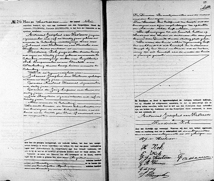 Culemborg huw. 16-05-1900 Antonius Josephus van Hesteren en Hendrina Kok