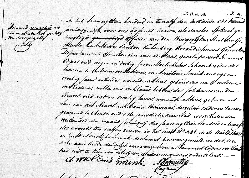 GldA, ovl. reg. Culemborg 1812, akte 12