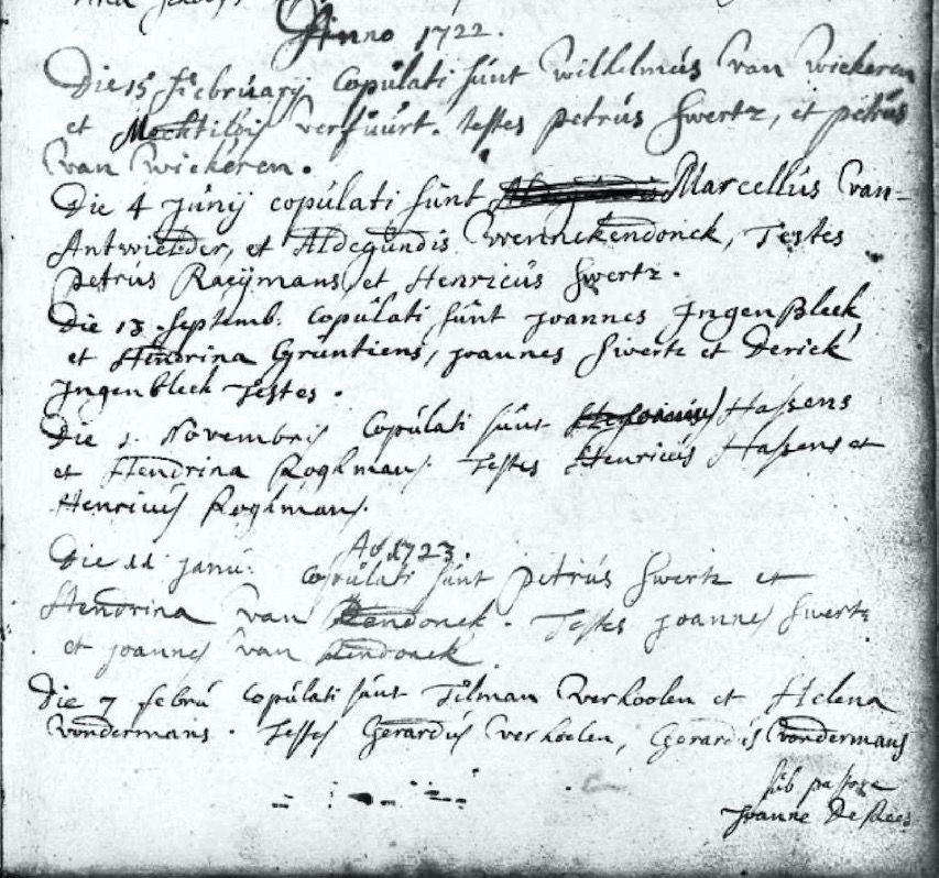 Hassum huw. 13-09-1722 Joannes Ingenbleek en Hendrina Gruntiens