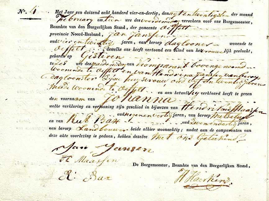 BHIC, geb.reg. Oeffelt 1834, akte 4