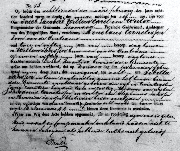 Zevenaar ovl. 16-02-1837 Sibilla Janssen