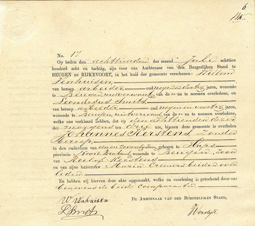 BHIC, ovl. reg. Beugen en Rijkevoort 1888, akte 17