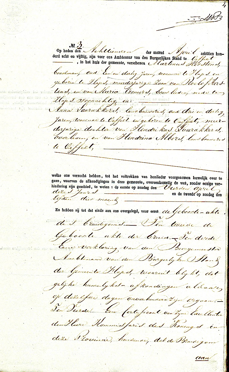BHIC, huw. reg. Oeffelt 1858, akte 3