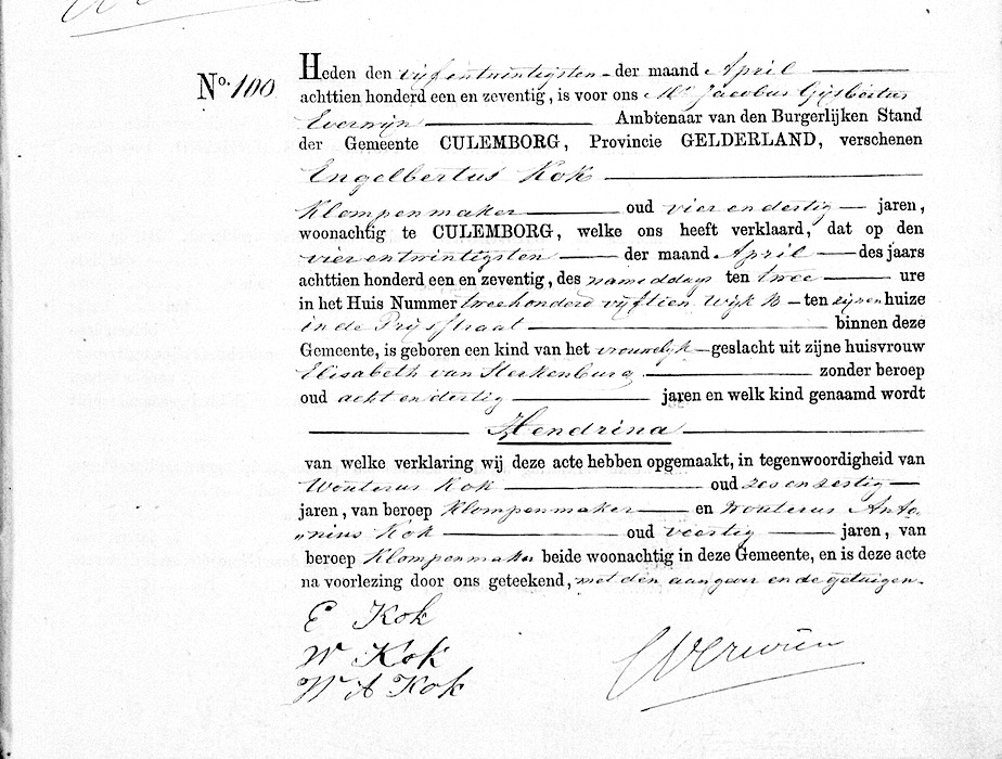 GldA, geb. reg. Culemborg 1871, akte 100
