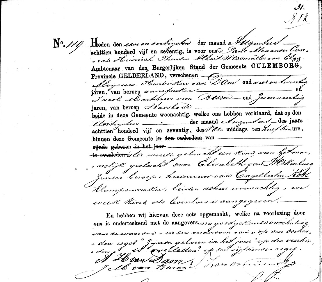 GldA, ovl. reg. Culemborg 1875, akte 119