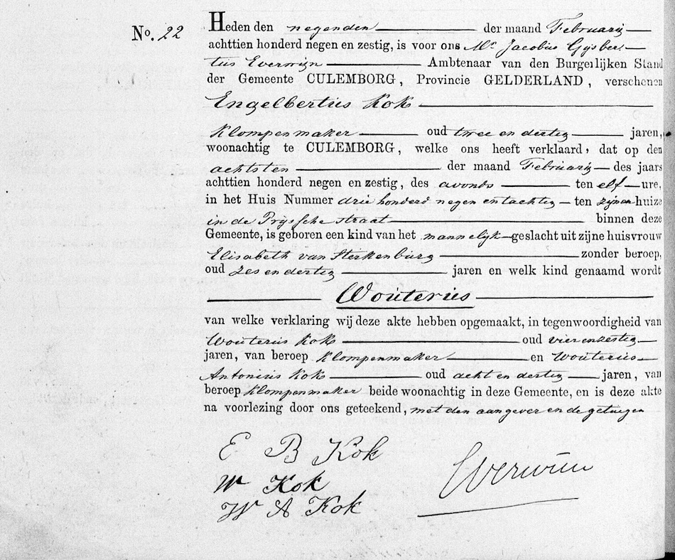 GldA, geb. reg. Culemborg 1869, akte 22