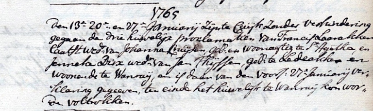 Cuijk huw. 27-01-1765 Francis Laaracker en Jenneke Derix