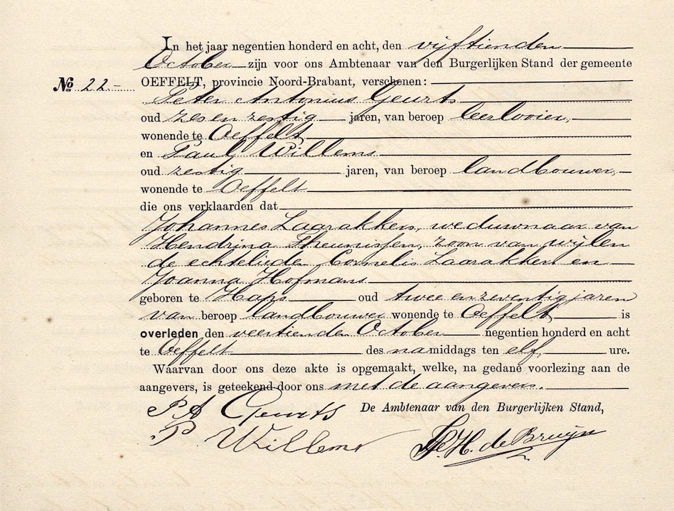 ZA, ovl. reg. Oeffelt 1908, akte 22