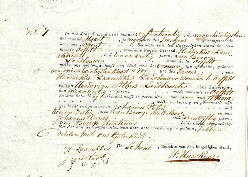 BHIC, geb. reg. Oeffelt 1825, akte 7