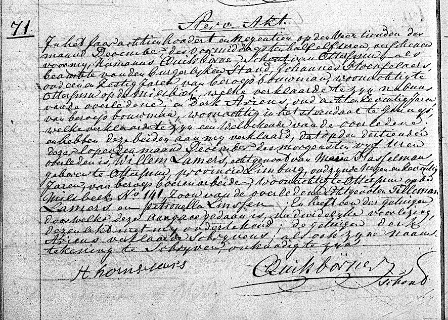 RHCL, overl. reg. Ottersum 1819, akte 71