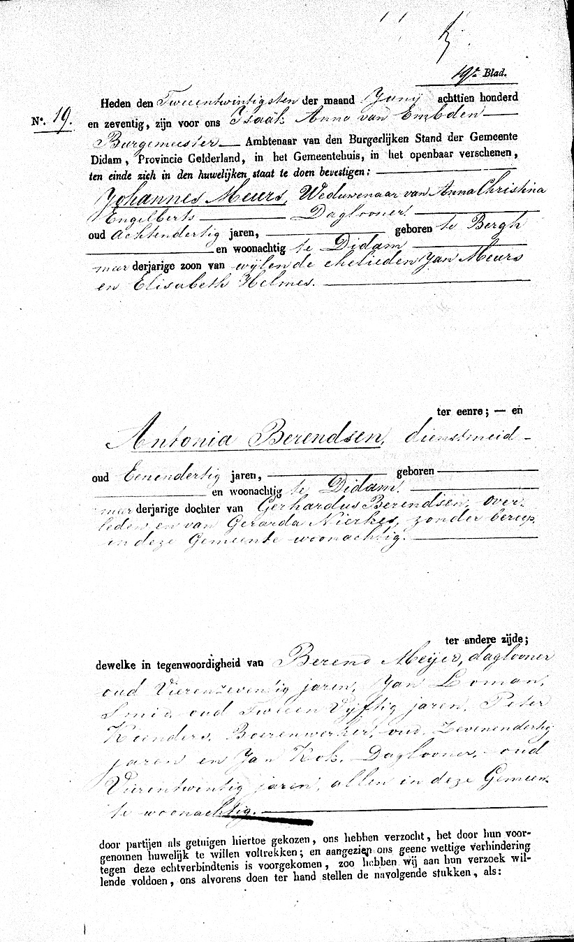 Didam huw. 22-06-1870 Johannes Meurs en Antonia Berendsen